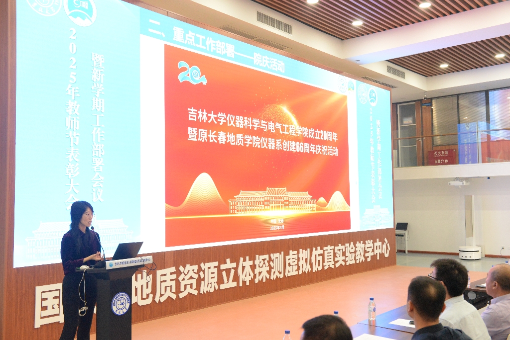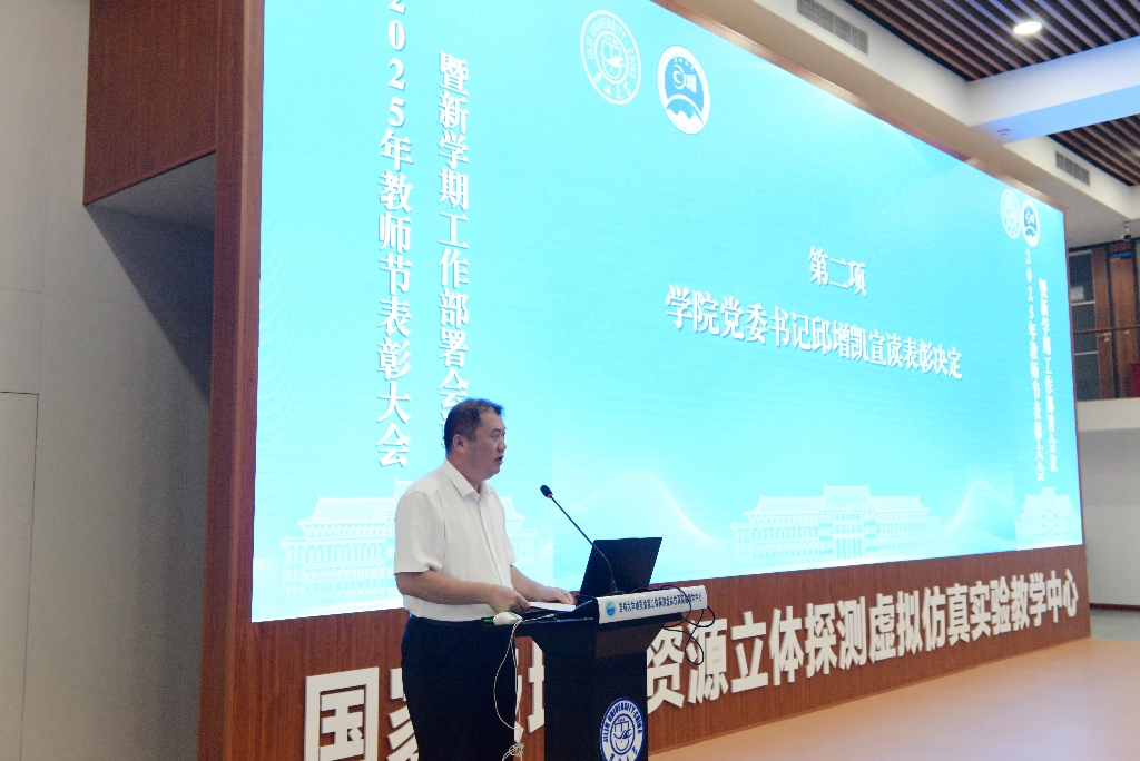 在朝阳校区国家地质资源立体探测虚拟仿真实验教学中心召开2025年教师节表彰大会暨新学期工作部署会议。在线博彩全体教职工参加会议,会议由行政副院长朱宇主持。