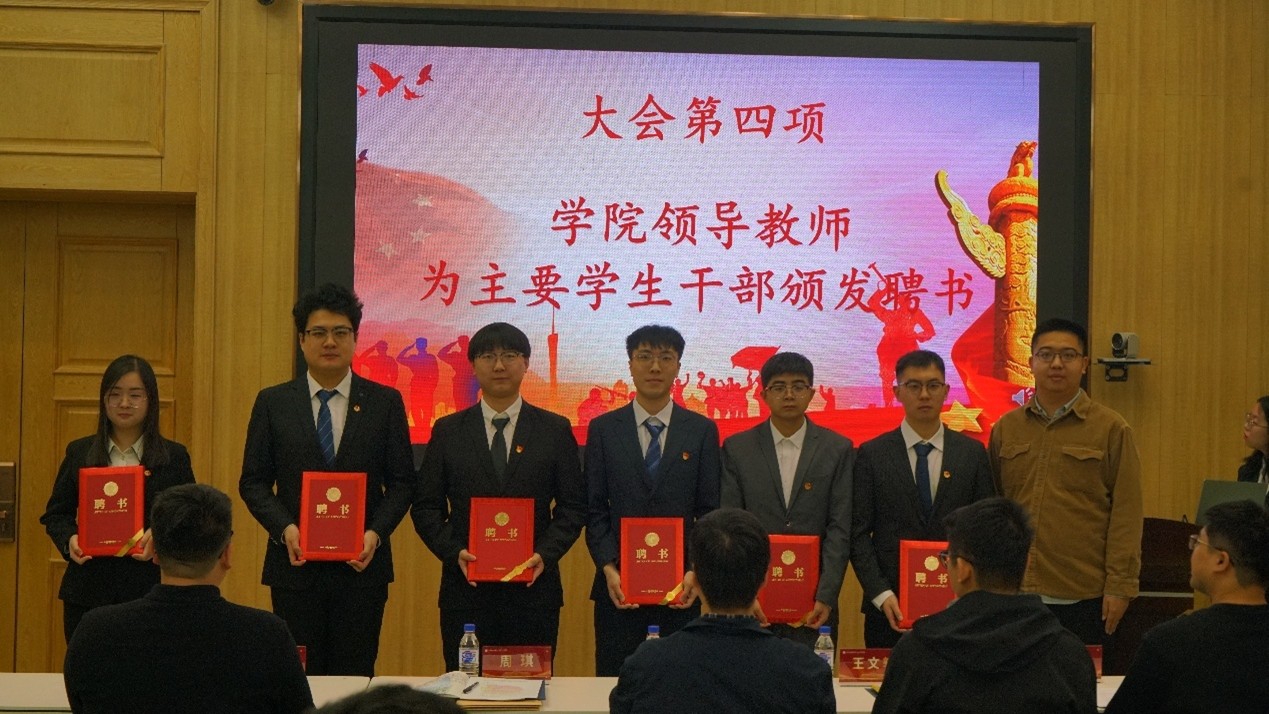 为表彰先进,承续担当,王文轩老师、史博日老师、周琪老师分别为第二十届学生会及第九届研究生会主要学生干部颁发聘书。